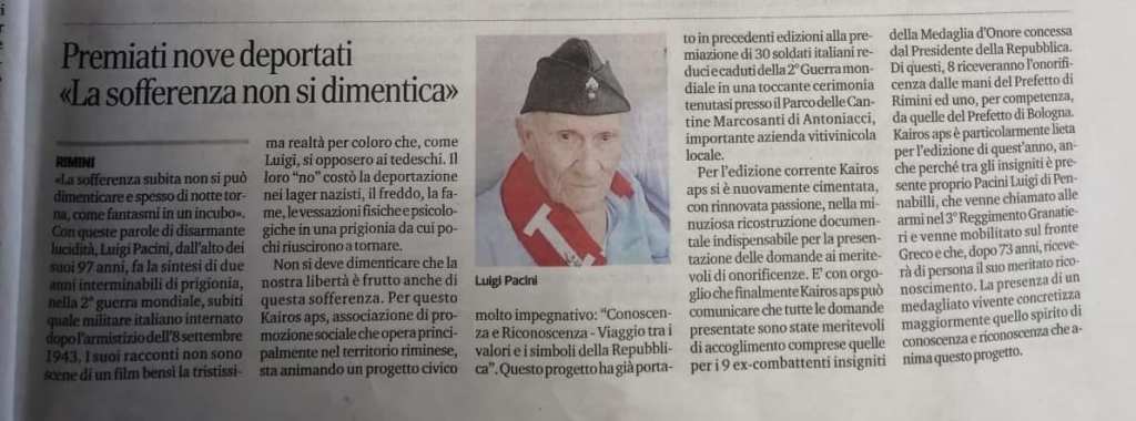 Durante la cerimonia sono stati assegnate, dal Prefetto di Rimini, le Medaglie d’Onore a 8 deportati militari fatti prigionieri di guerra nelle regioni balcaniche, dalle forze armate tedesche, durante la seconda guerra mondiale, deportati in Germania e internati nei lager nazisti. Sono stati insigniti di questa prestigiosa onorificenza dello Stato: Francesco Giacomini e Giuseppe Ottaviani del Comune di Rimini; Luigi Antolini, Tino Antoniacci, Pietro Flenghi, Gino Ricci del Comune di Santarcangelo; Quinto Contucci, Emilio Giacomini del Comune di Poggio Torriana. A ritirare la medaglia i familiari dei deportati. L’istruttoria delle domande di tutti i deportati premiati è stata curata da Scipioni Joselito, presidente dell’associazione culturale “La memoria bellica degli italiani nel mondo”, in collaborazione con Silvio Biondi presidente dell’associazione kairos di Poggio Torriana.